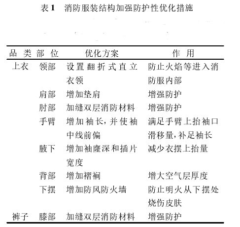 基于防護服裝功能設(shè)計模式,消防服結(jié)構(gòu)優(yōu)化的目的主要包括加強防護性能和提升工效性能兩方面。
